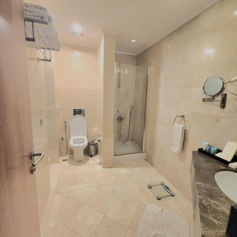 Featuring distinctive views over the holy shrines of Imam Hussein and Imam Abbas, Karbala Rayhaan Hotel & Suites offers modern luxurious accommodation with traditional Arabic hospitality. The Holy Shrines are a short walking distance from the hotel, reachable within five to seven minutes only. All units are individually decorated with a sleek design. Each suite includes a living area with a flat-screen TV and a tea/coffee maker. The bathroom is fitted with a shower and complimentary toiletries. Guests can enjoy a daily breakfast at the hotel's restaurant or in the room. The hotel offers 3 restaurants including a specialty roof top restaurant which serves an international cuisine throughout the day to delight all tastes. Room service is available 24 hours. Karbala Rayhaan Hotel & Suites offers free spa facilities which include a free hot tub, sauna and a Turkish bath. Najaf is a 60-minute drive away and Baghdad International Airport is 109 km from Karbala Rayhaan Hotel & Suites.